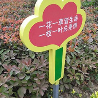 花草牌是指樹立在花草叢中用于提示愛護(hù)的標(biāo)識(shí)牌。又稱牌或草牌,屬于溫馨提示的范疇。花草牌一般較矮,一般高度在40公分到1.2米之間,是雙面,厚度一般是4公左右。有鋼板的,有純實(shí)木的,或上述材質(zhì)相互結(jié),制作工藝為: